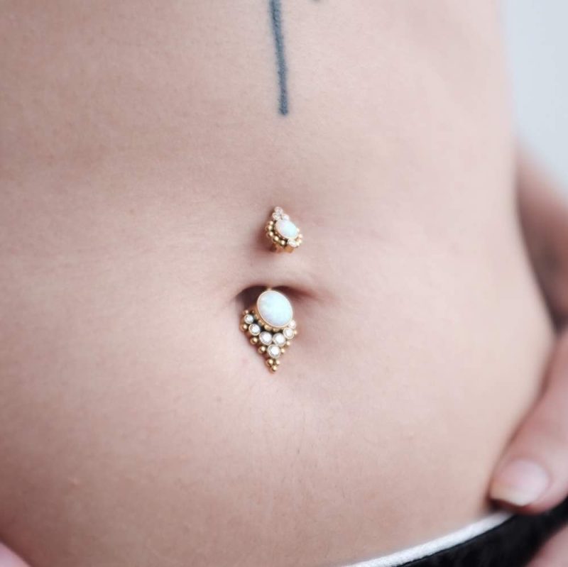 Piercing nombril hypnotisant orné de zircons et d’opales bleues, pour ne jamais passer inapercu.e ! Portez-le pour les grandes occasions ou bien même tous les jours, parce que pourquoi pas, on est des queens.