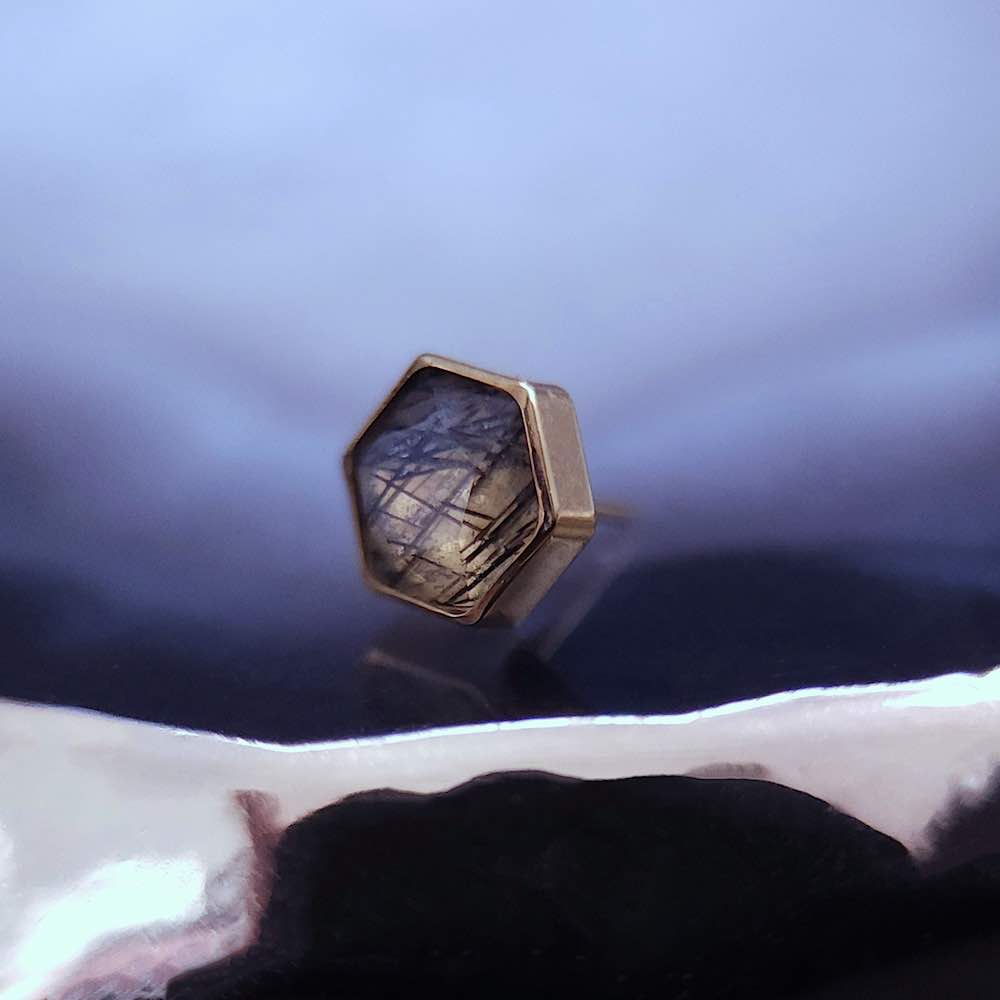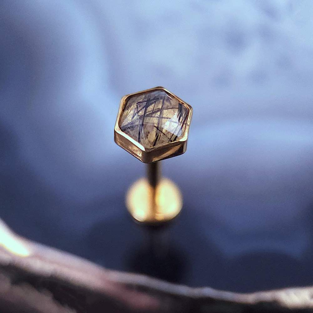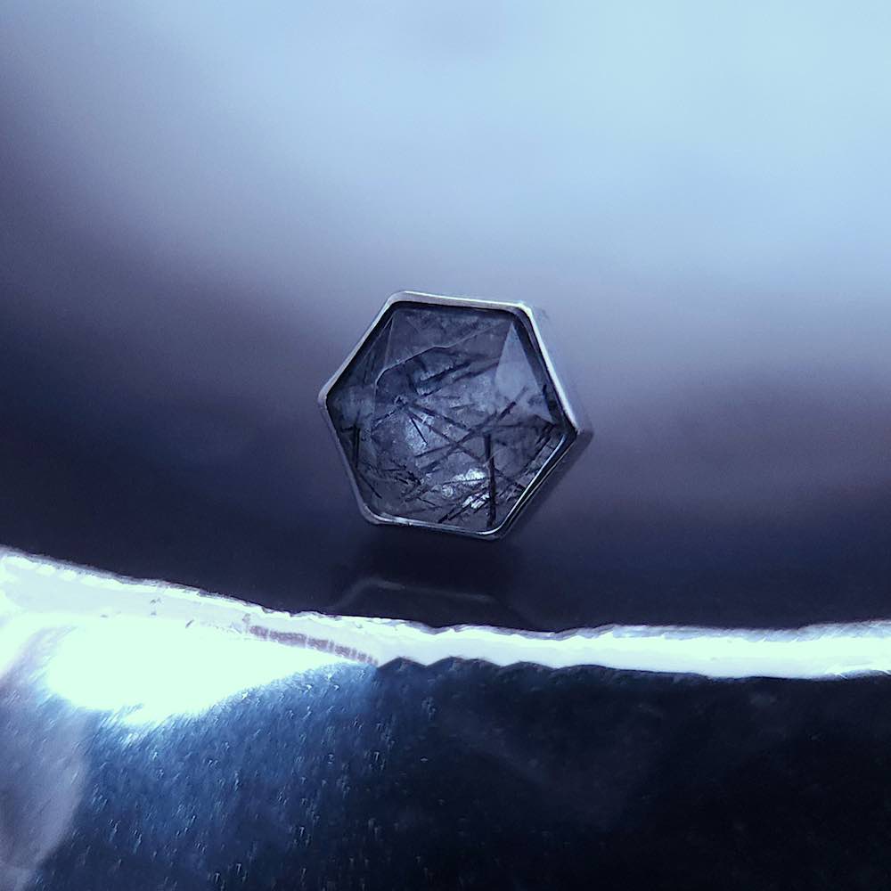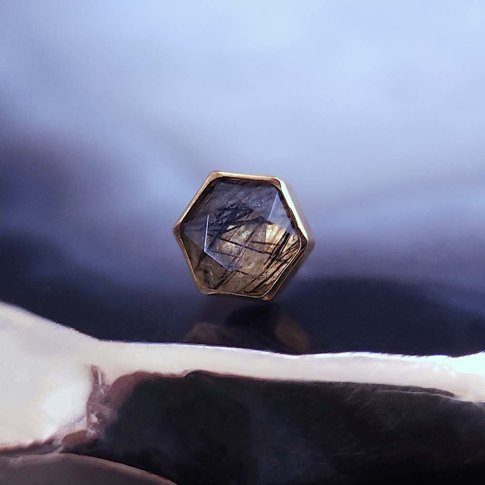 Un petit pentagone exceptionnel pour sublimer votre piercing, taillé dans un magnifique quartz tourmaliné naturel. Portez-le avec d’autres bijoux en pierre naturelle de la boutique pour un look de sorcière envoûtant !