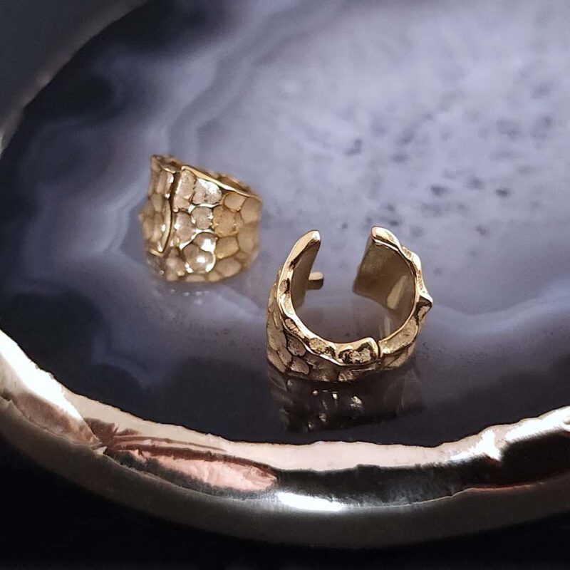 Ces ear cuffs martelés illumineront vos lobes ! Un look très badass à combiner avec d’autres ear cuffs ou anneaux de la collection. Facile à mettre et à enlever grâce à leur système de fermeture clicker.