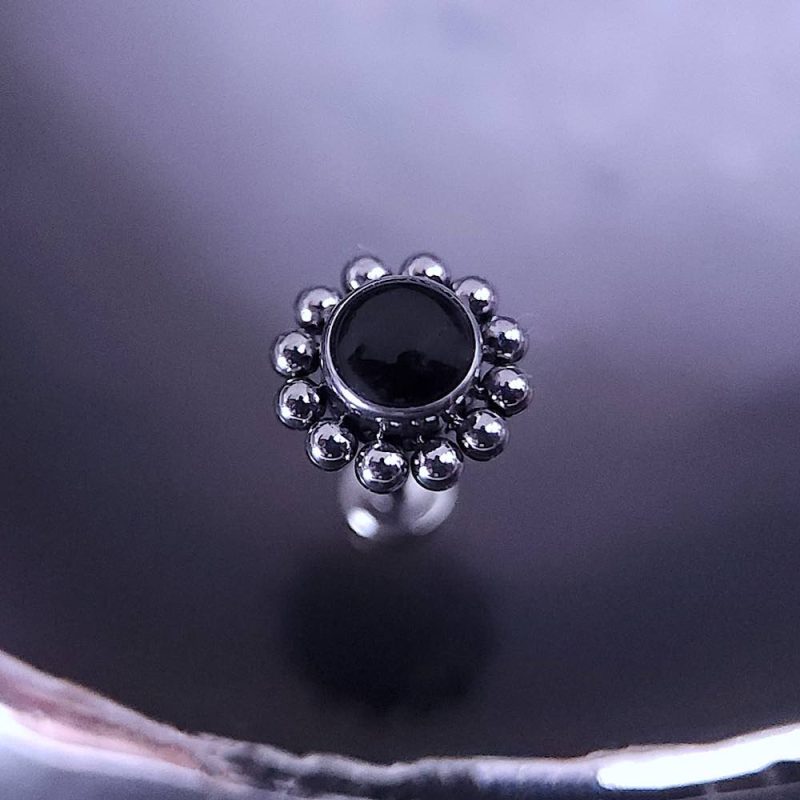 Je l’ai acheté en argenté pour un look très (gentille) sorcière. Porté au médusa. Accompagné du Aura Clicker argenté au septum et en double nostrils les clou de nez Crystal Purple en argenté. C’est parfait !!