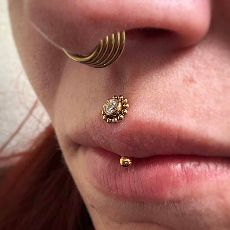 Advised to wear in: rook, jestrum, vertical labret, christina, vch