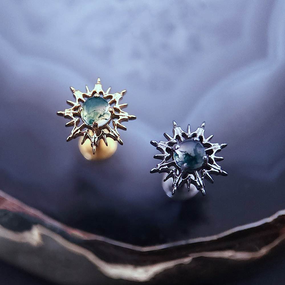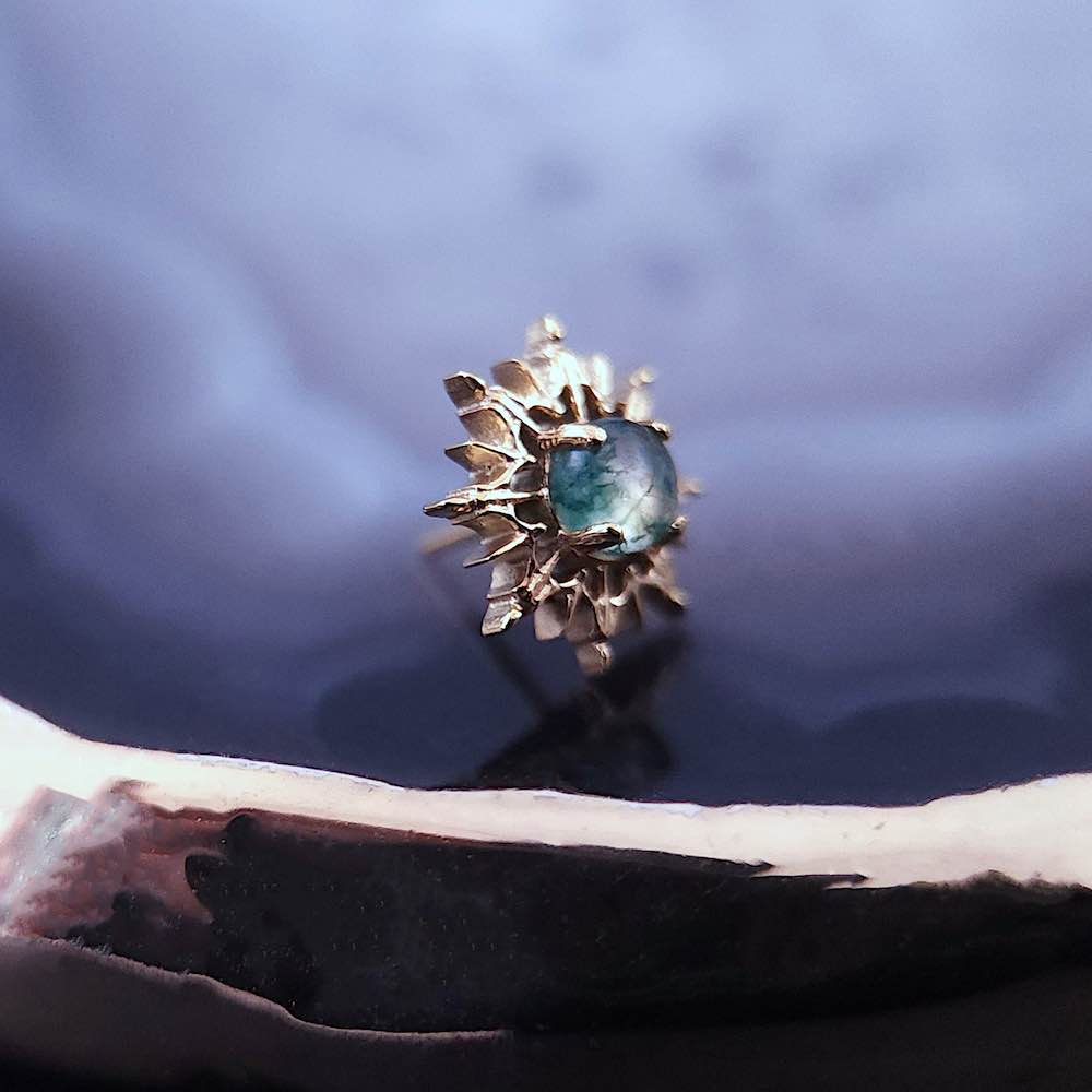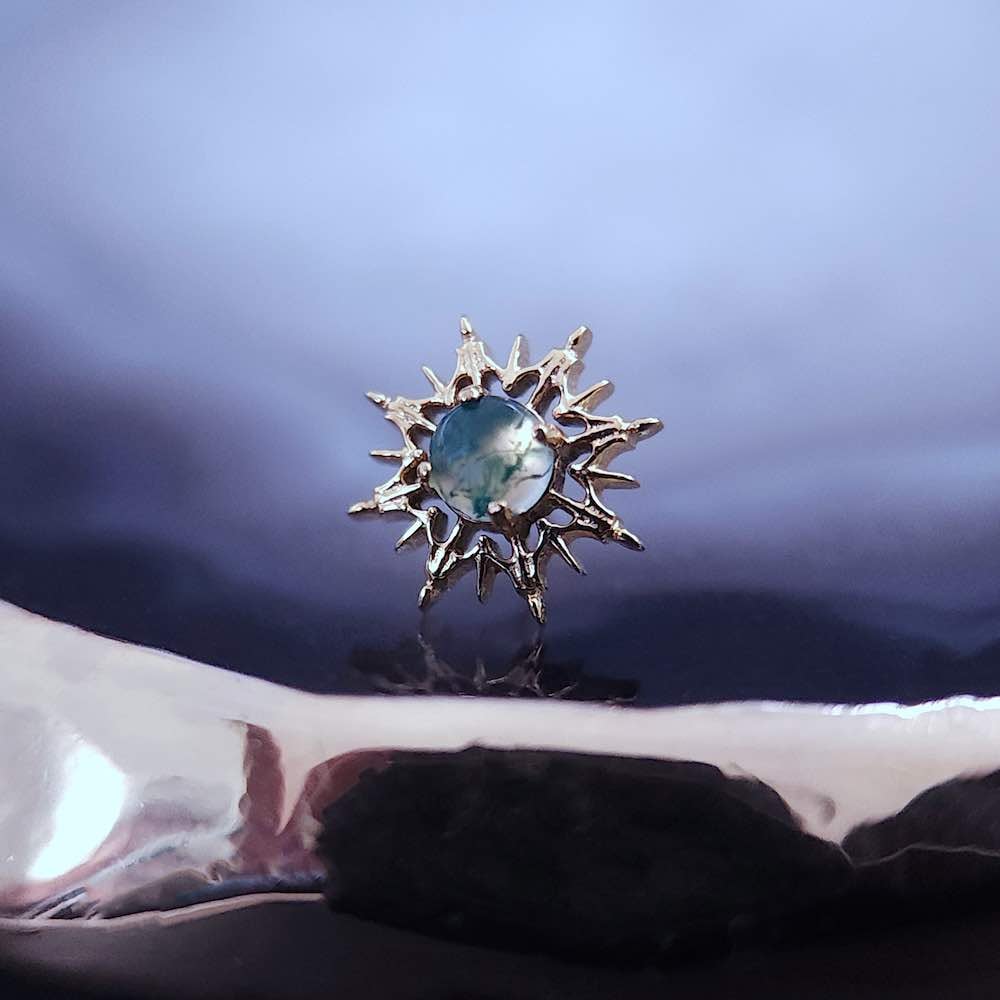 Very special gothic star set with a unique natural moss agate stone. Choose the right colors and stack it with other green moss jewelry from the shop for a very unique look!